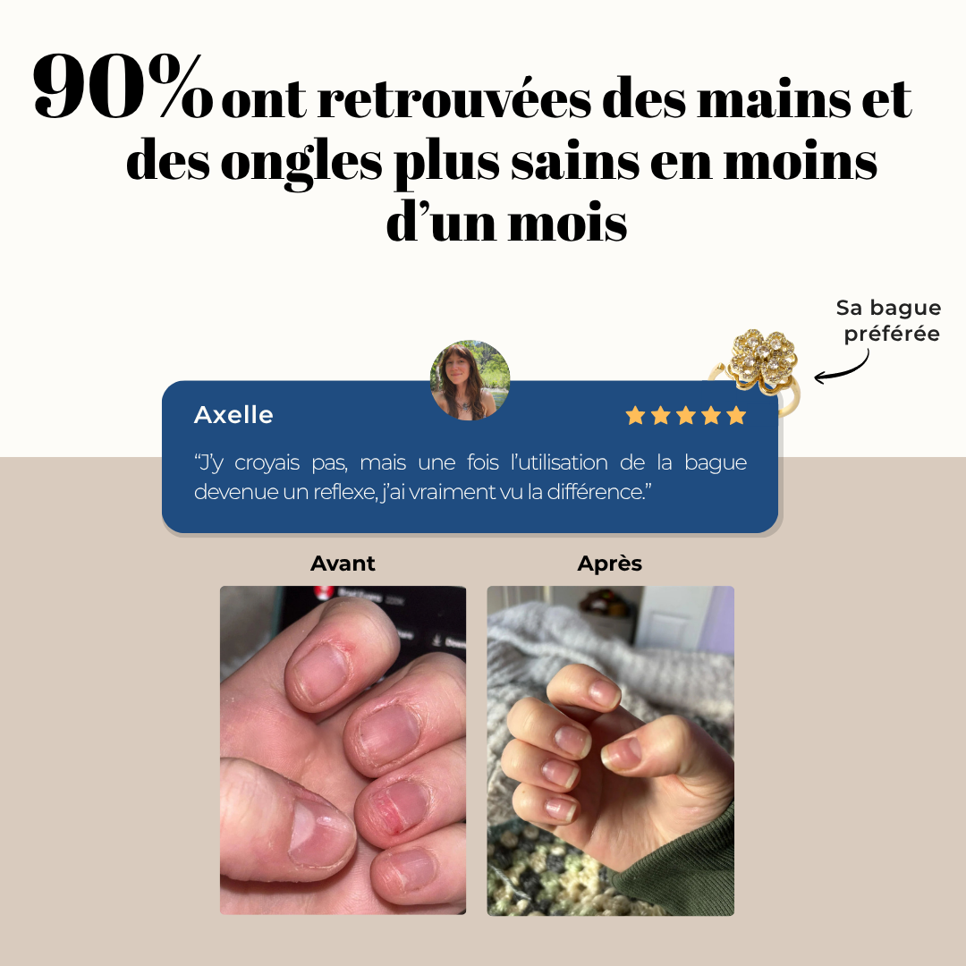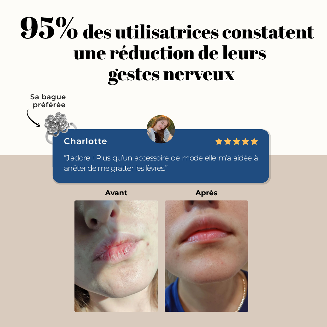 ✅ En résumé : porter une bague rotative permet de transformer un geste qui abîme (se ronger les ongles, gratter la peau) en un geste neutre et apaisant. C’est un outil simple, validé par des principes psychologiques, pour retrouver des mains et une peau en meilleure santé.